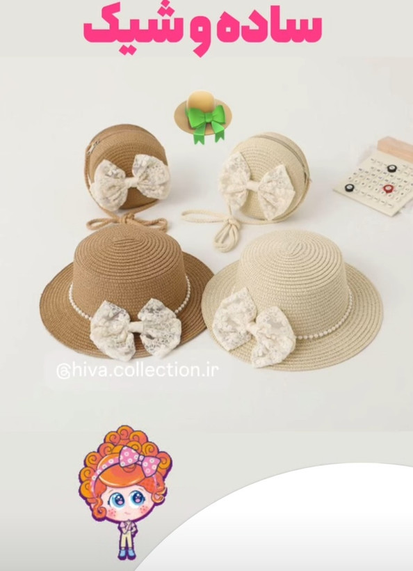 ست کیف و کلاه حصیری دخترانه پاپیونی