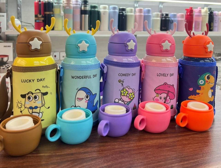 قمقمه استیل وارداتی کیفیت بالا- با دو درب مجزا ( نی دار و فلاسکی)