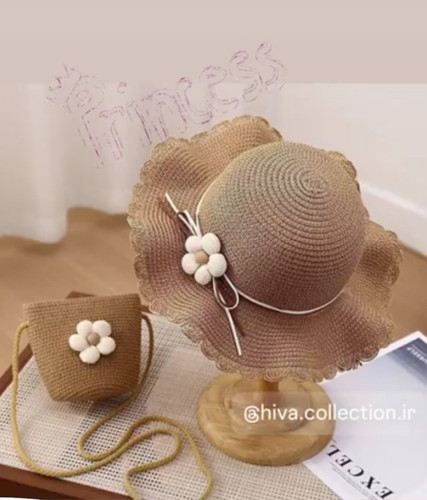 ست کیف و کلاه حصیری دخترانه پاپیونی